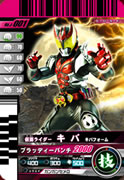 J-001 仮面ライダーキバ キバフォーム| ゾクセイ | コウゲキ | ボウギョ | タイリョク | ヒッサツワザ攻撃力 |